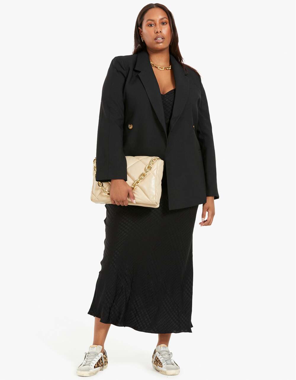 | The Ivy Oversized Tailored Blazer from Shona Joy is a blazer that creates a stunning silhouette. With strong, padded shoulders and an oversized fit, it's the perfect layering blazer for the winter and a great one to contrast with feminine styles.